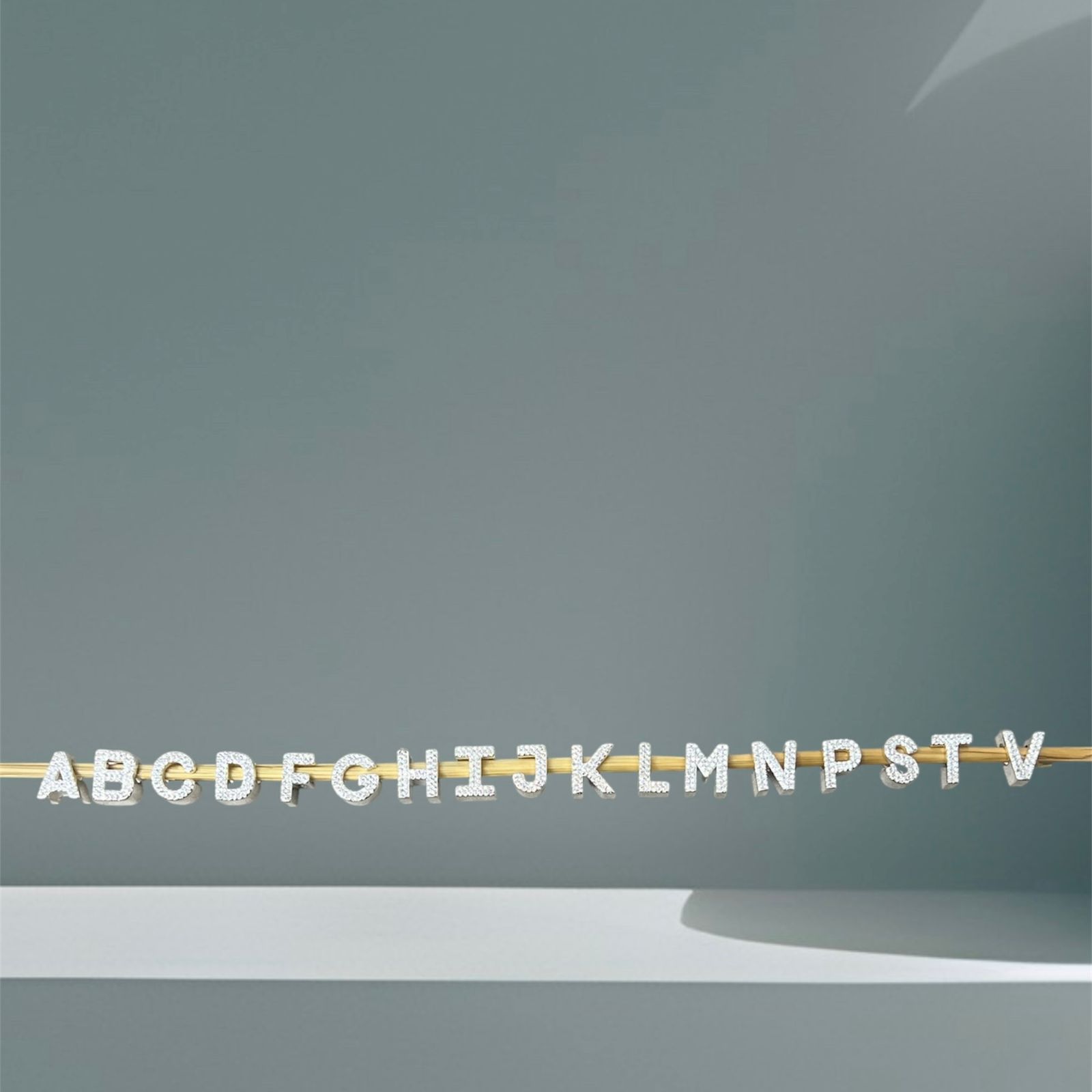 BERLOQUE LETRA CRAVEJADA EM PRATA 925. BERLOQUE EM FORMATO DE LETRA, CRAVEJADO COM ZIRCÔNIAS BRILHANTES, IDEAL PARA PERSONALIZAR SUA PULSEIRA OU COLAR COM INICIAIS ESPECIAIS.