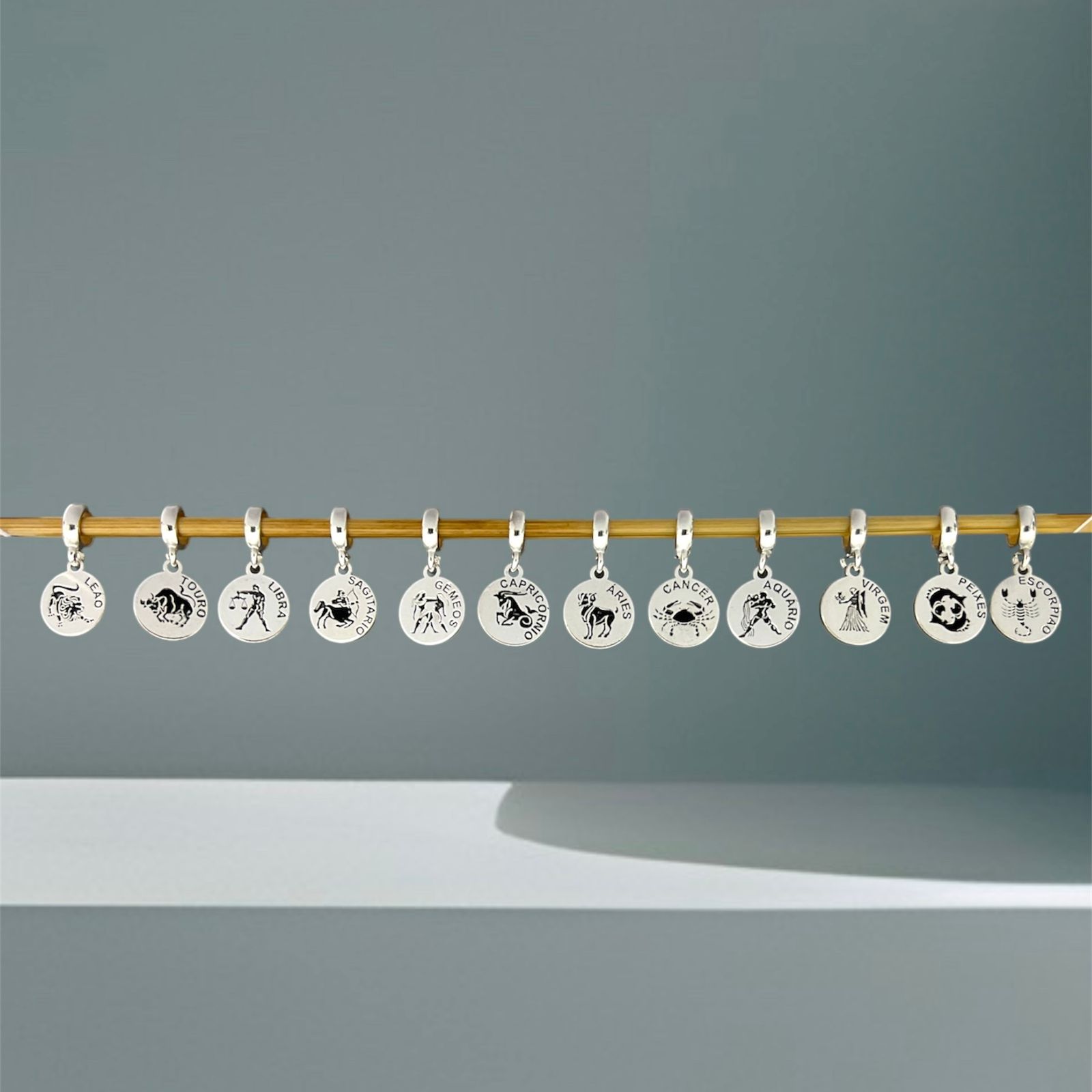 BERLOQUE SIGNOS ZODÍACO EM PRATA 925. BERLOQUE REDONDO COM GRAVAÇÃO A LASER DOS SIGNOS DO ZODÍACO. CADA PEÇA TRAZ O NOME E O SÍMBOLO DO SIGNO CORRESPONDENTE, EM DETALHES PRECISOS E ACABAMENTO POLIDO. IDEAL PARA EXPRESSAR SUA PERSONALIDADE NAS PULSEIRAS.