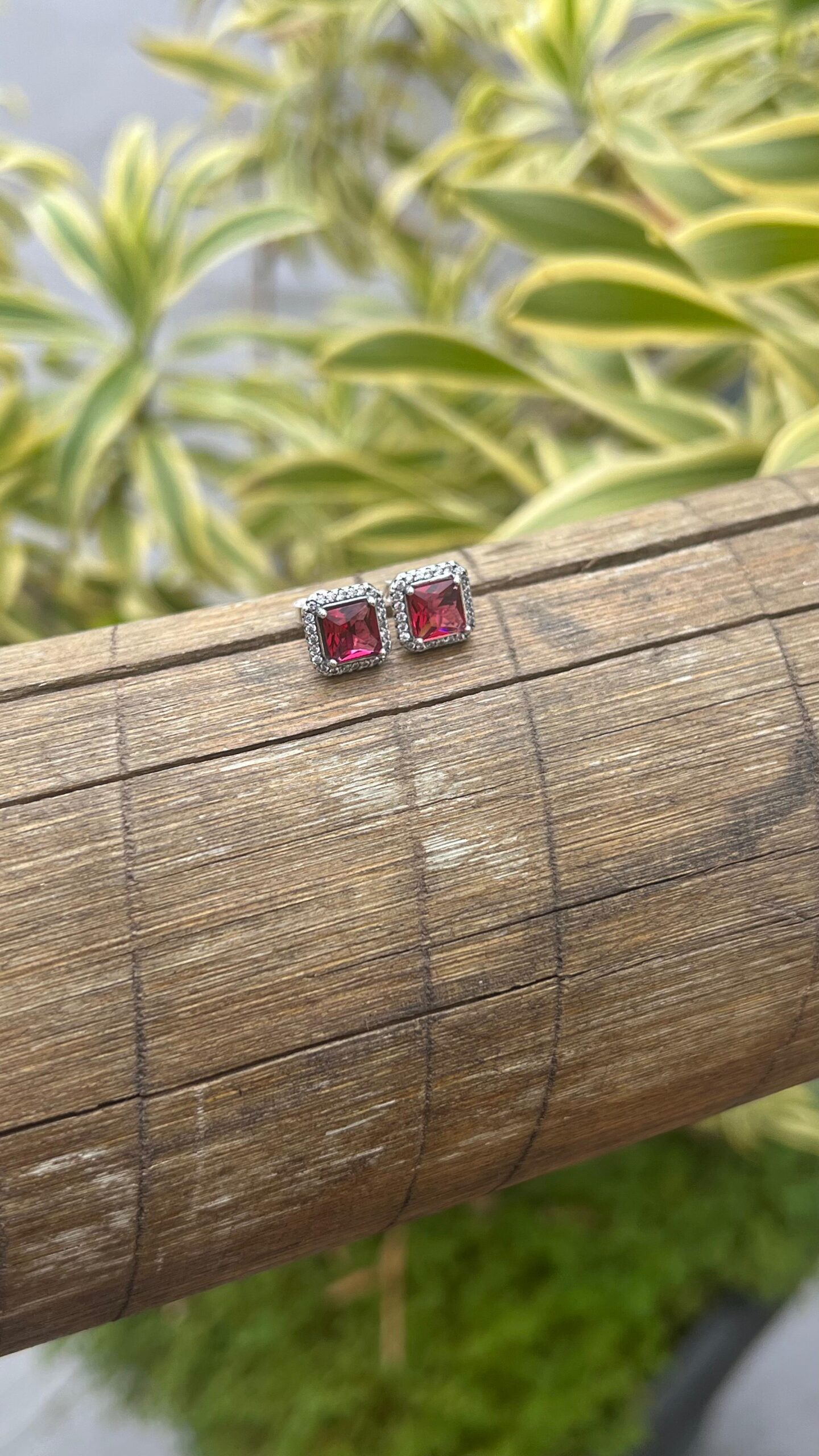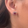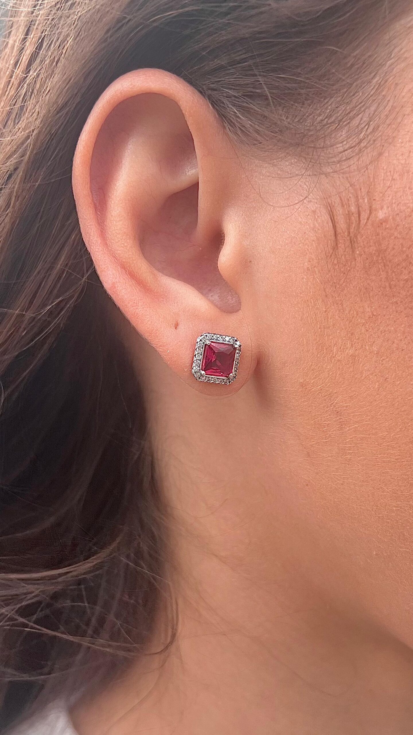 BRINCO QUADRADO RUBY CRAVEJADO / INSPIRAÇÃO PANDORA – PRATA 925